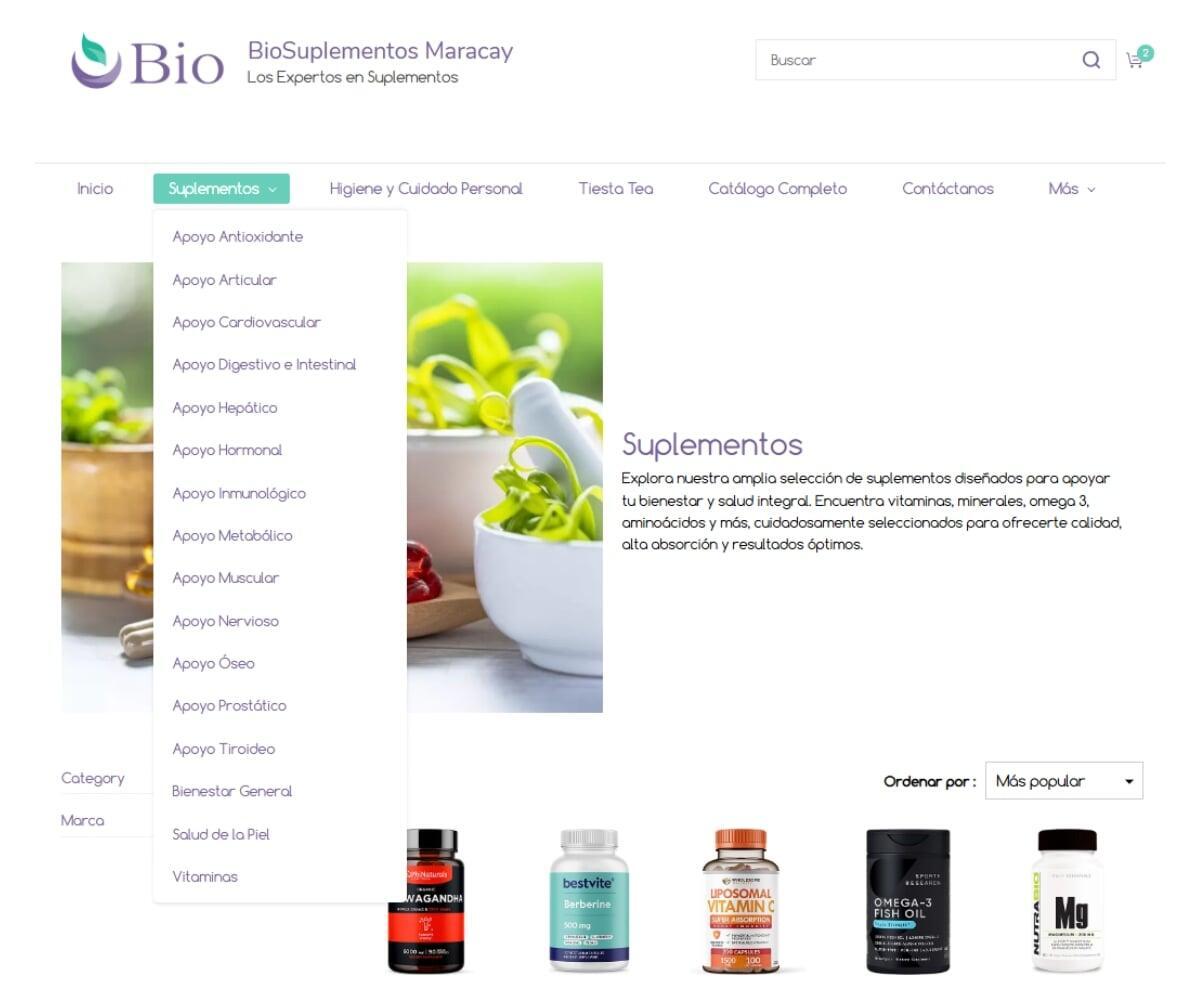 - Navega por las categorías organizadas por el tipo de apoyo que ofrecen nuestros productos, como Apoyo Digestivo, Cardiovascular, Nervioso, entre otros.