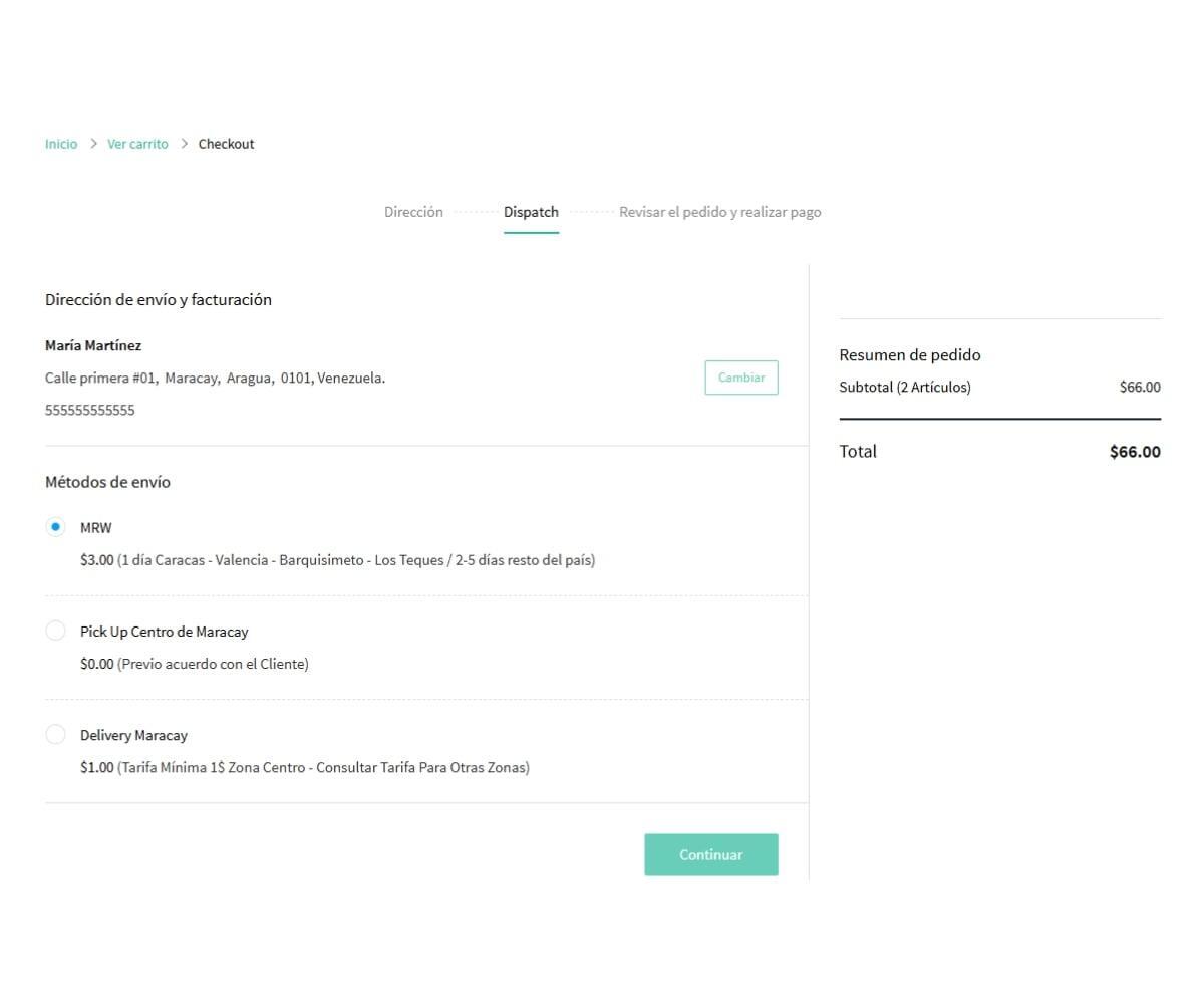 En la sección "Método de Envío", selecciona el método de entrega de tu preferencia.