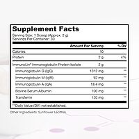 Este suplemento en polvo contiene proteínas de suero bovino enriquecidas con inmunoglobulinas (IgG, IgA e IgM), las cuales juegan un papel clave en la protección del sistema inmune y la salud intestinal. Las inmunoglobulinas ayudan a neutralizar patógenos y refuerzan la barrera intestinal, beneficiando tanto el sistema digestivo como la respuesta inmune.
