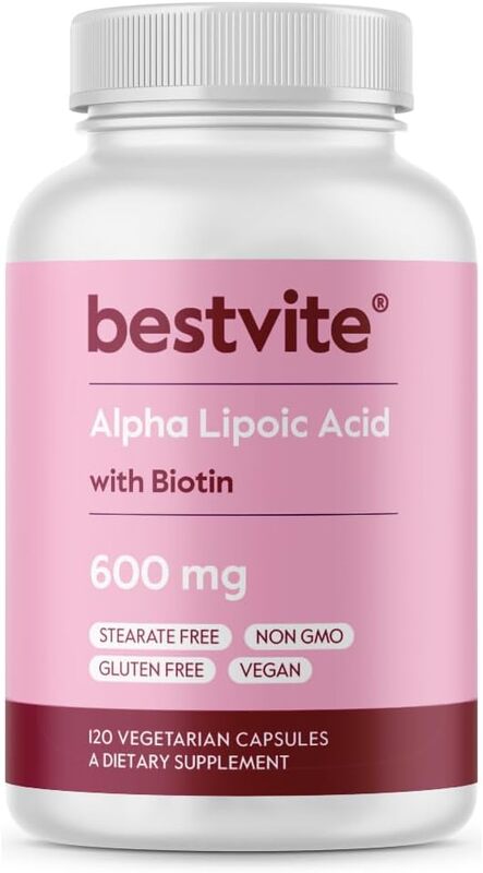 Descripción general: Este suplemento de Bestvite® combina Ácido Alfa Lipoico (ALA) con Biotina. El ALA es un antioxidante que ayuda a proteger las células del daño causado por los radicales libres y también participa en el metabolismo energético. El ALA se presenta en dos formas (isómeros): R-ALA, que es la forma natural y más biodisponible, y S-ALA. La mayoría de los suplementos de ALA contienen una mezcla de ambas formas. La Biotina, una vitamina del complejo B, es esencial para el metabolismo de los carbohidratos, las grasas y las proteínas, y también contribuye a la salud del cabello, la piel y las uñas. Este producto se presenta en cápsulas vegetarianas y está formulado sin azúcar añadido, soya ni lácteos, y no contiene sabores artificiales.