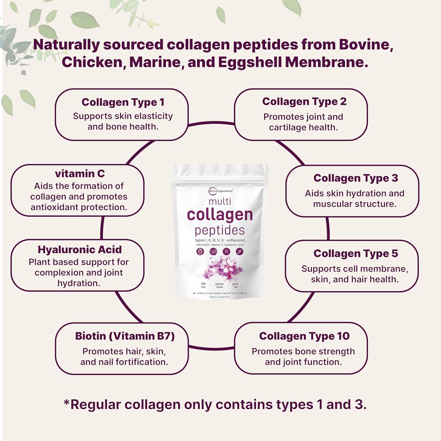 COLLAGEN PEPTIDES (I, II, III, V, X - sin sabor) 40 packets 11 gr. MICRO INGREDIENTS