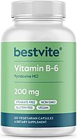 Descripción general: Este suplemento de Bestvite® contiene Vitamina B6 en forma de Piridoxina HCl. La Vitamina B6 es una vitamina hidrosoluble que participa en más de 100 reacciones enzimáticas en el cuerpo, principalmente relacionadas con el metabolismo de las proteínas. También es vital para la función cerebral normal, la producción de neurotransmisores, la formación de hemoglobina (que transporta el oxígeno en la sangre) y el mantenimiento de un sistema inmunológico saludable. Este producto está formulado sin azúcar añadido, soya ni sabores artificiales, y es libre de lácteos. Se presenta en cápsulas vegetarianas.