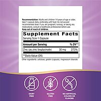 Este suplemento contiene 30 mg de zinc bisglicinato, una forma de alta biodisponibilidad que facilita su absorción y uso por el cuerpo. Es ideal para fortalecer el sistema inmunológico, apoyar la salud de la piel y el cabello, promover el funcionamiento adecuado de la tiroides, y participar en procesos clave como la síntesis de ADN y la reparación celular. Libre de gluten, lácteos y colores o sabores artificiales, ofrece una fórmula pura y eficaz.